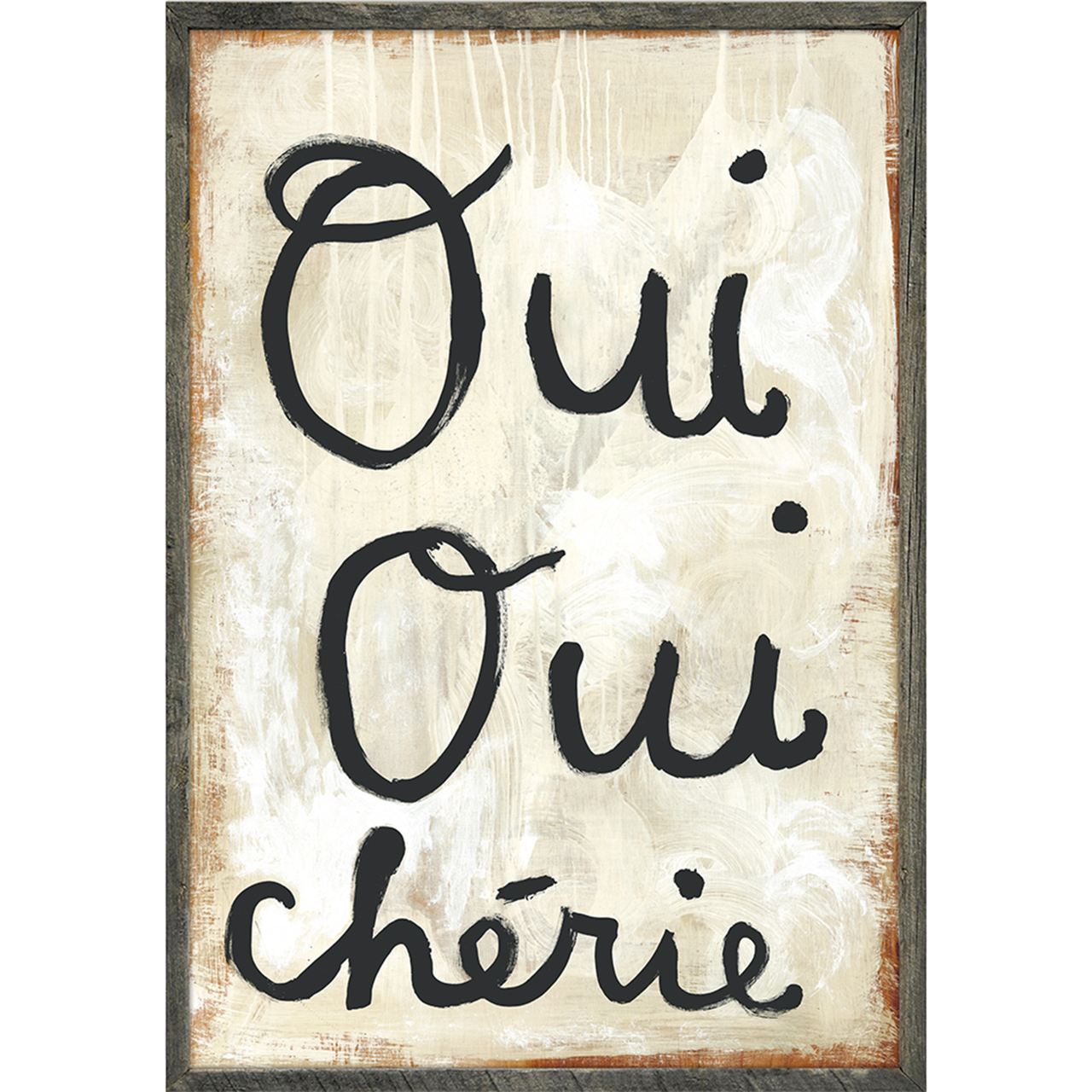 French for “Yes Dear,” this art print reads, "Oui oui chérie" in a black font on a white background. A potentially humorous (or loving) gift for the playful spouse or significant other in your life.
