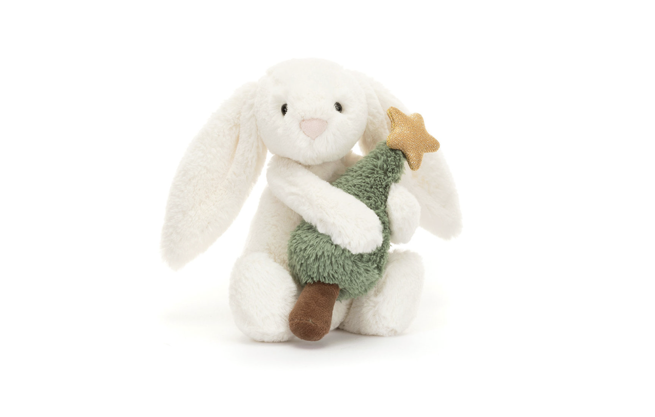 Bashful Bunny with Christmas Tree adores hugs. In fact, she believes every season is hugging season – but Christmas? That’s peak cuddle time. She’s been counting down since midsummer, ears twitching at the thought of mince pies, fairy lights, and maximum snuggle opportunities. This year, she’s picked the perfect tree (small, spruce, extremely portable) and she’s not letting go. It’s soft, it’s sparkly, and it smells vaguely of cinnamon. (Well, she says it does.)