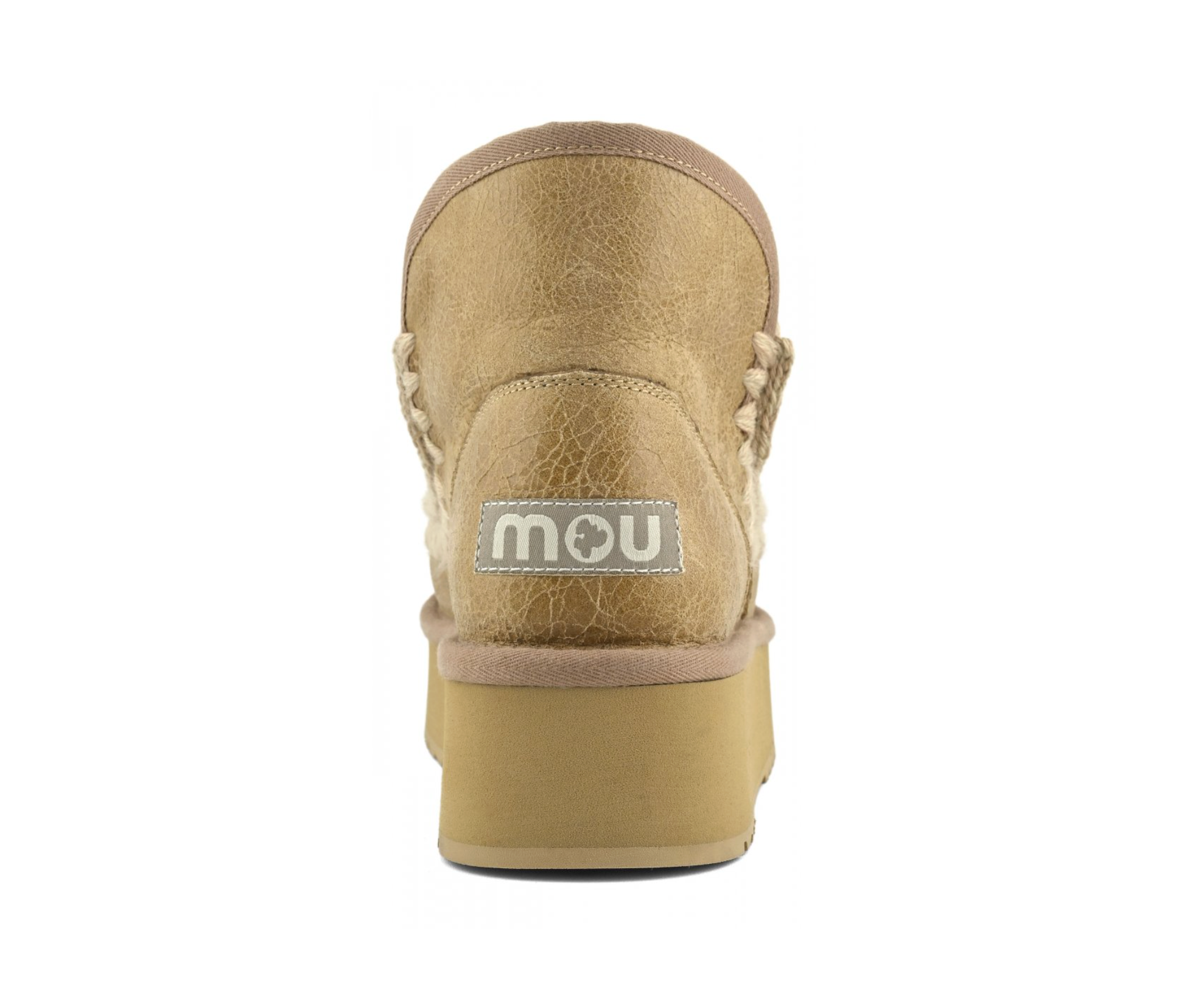 The Mini Eskimo Platform Boot is expertly handcrafted from luxurious suede, featuring Mou's signature wool crochet stitching. Designed for ultimate comfort and long-lasting durability, it is finished with a sturdy EVA rubber sole, offering the perfect combination of style and practicality