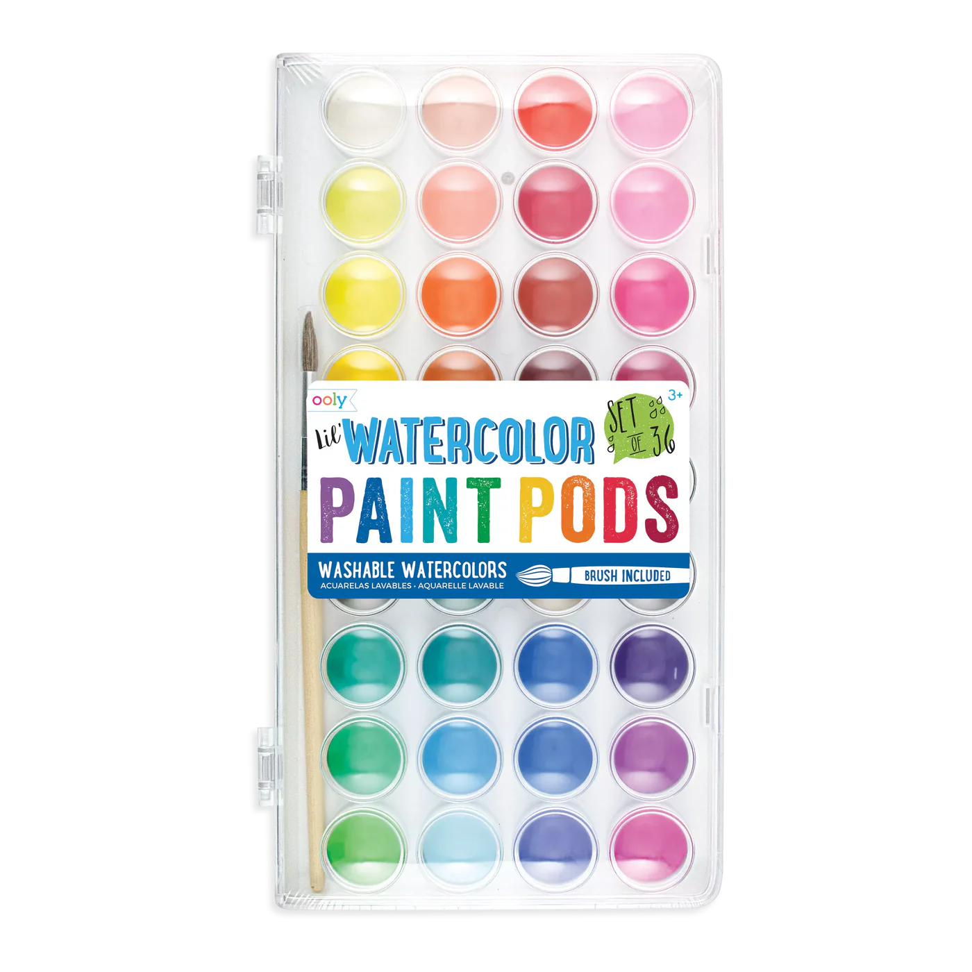 Bring on the color with the Lil' Watercolor Paint Pods Paint Set—a splash-tastic way for young artists to express themselves! This washable watercolor paint set has 36 vibrant colors all packed into a handy, travel-ready case, making it perfect for creative kids who love to paint anywhere.
