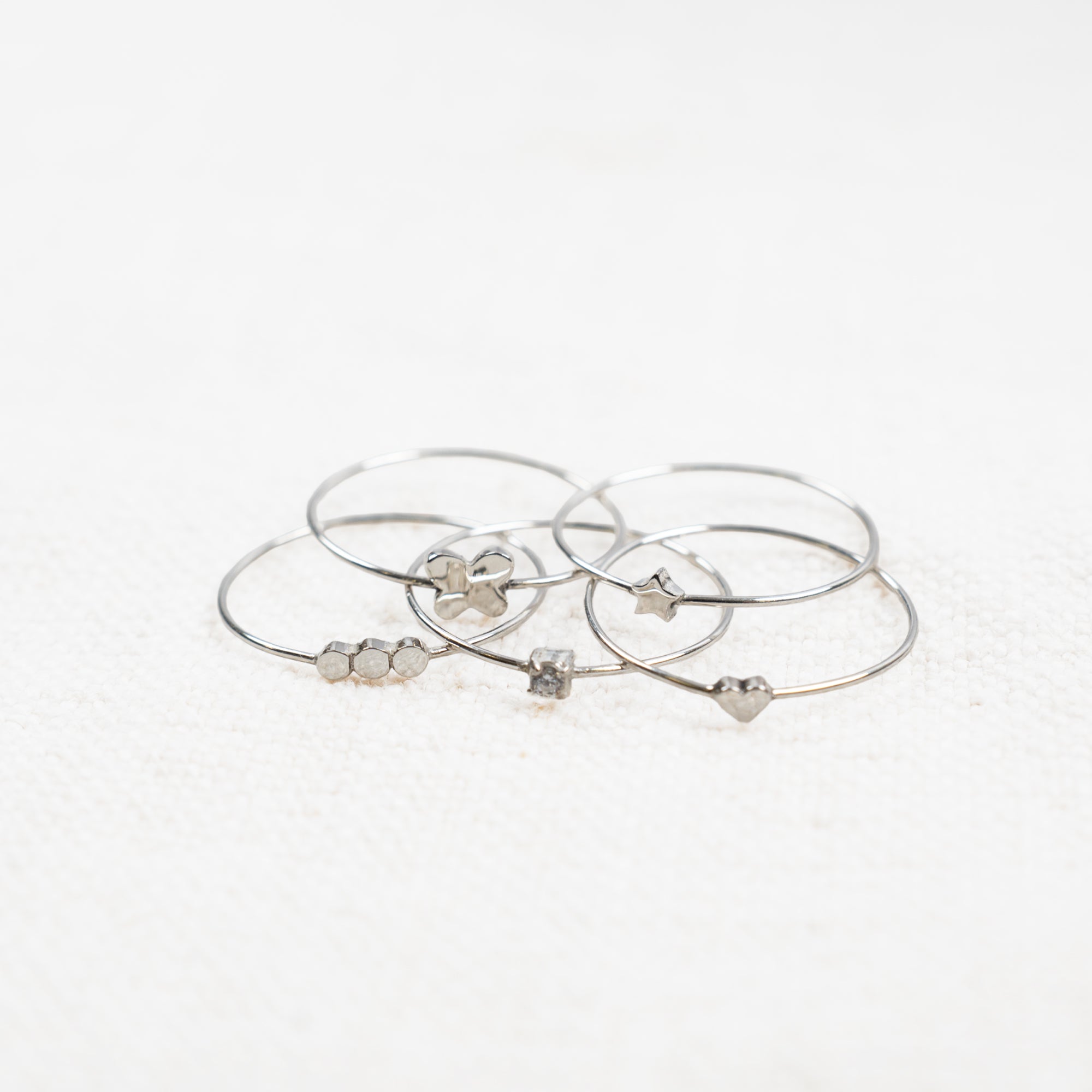 Elevate your style with Tiny Stackable Symbol Rings! Mix and match our playful butterfly, heart, star, ellipsis, and stud rings for a unique look. Express your individuality with these adorable and versatile rings.