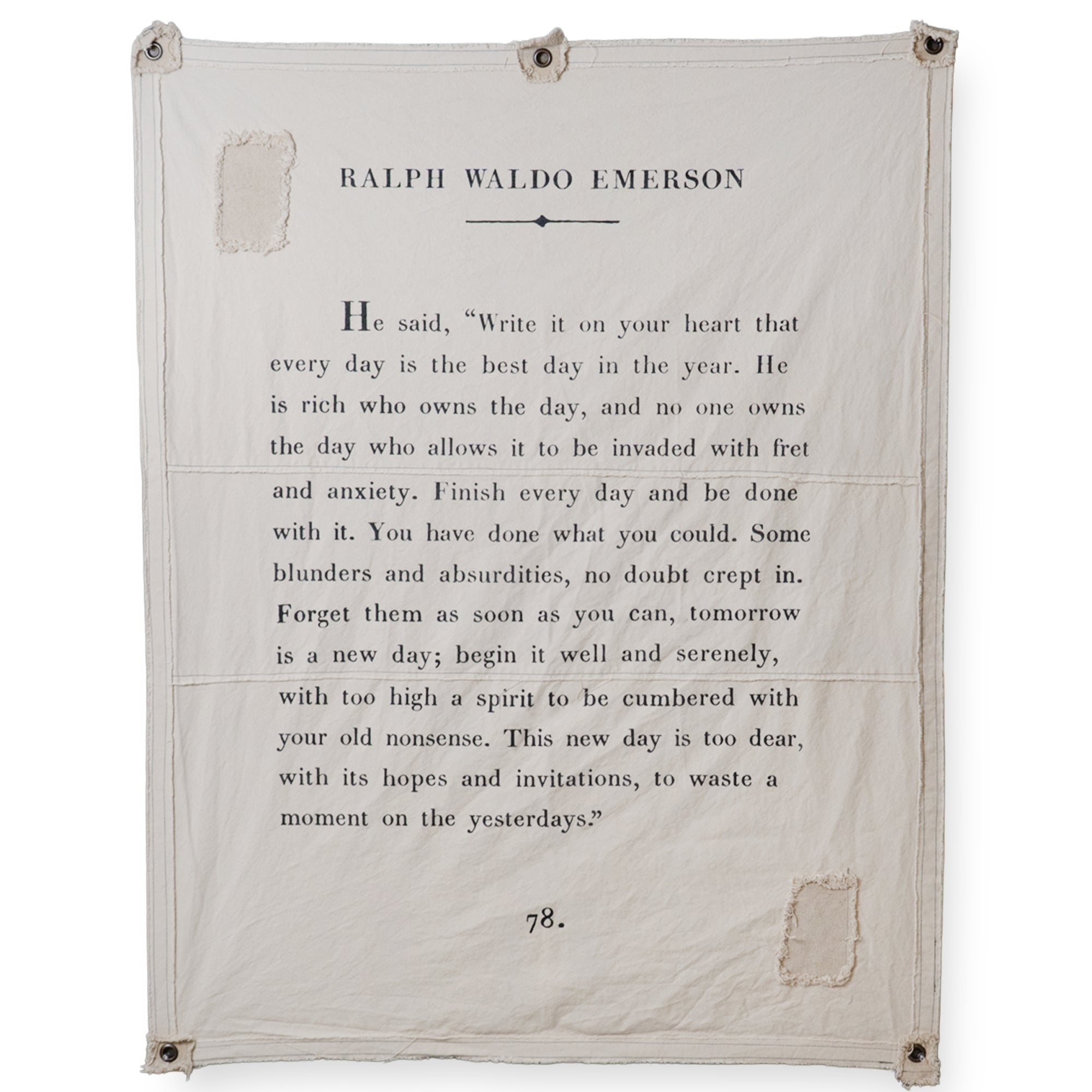 "He said, ‘Write it on your heart that every day is the best day in the year. He is rich who owns the day, and no one owns the day who allows it to be invaded with fret and anxiety. Finish every day and be done with it. You have done what you could. Some blunders and absurdities, no doubt crept in. Forget them as soon as you can, tomorrow is a new day; begin it well and serenely, with too high a spirit to be cumbered with your old nonsense. This new day is too dear, with its hopes and invitations, to waste a moment on the yesterdays.’"
